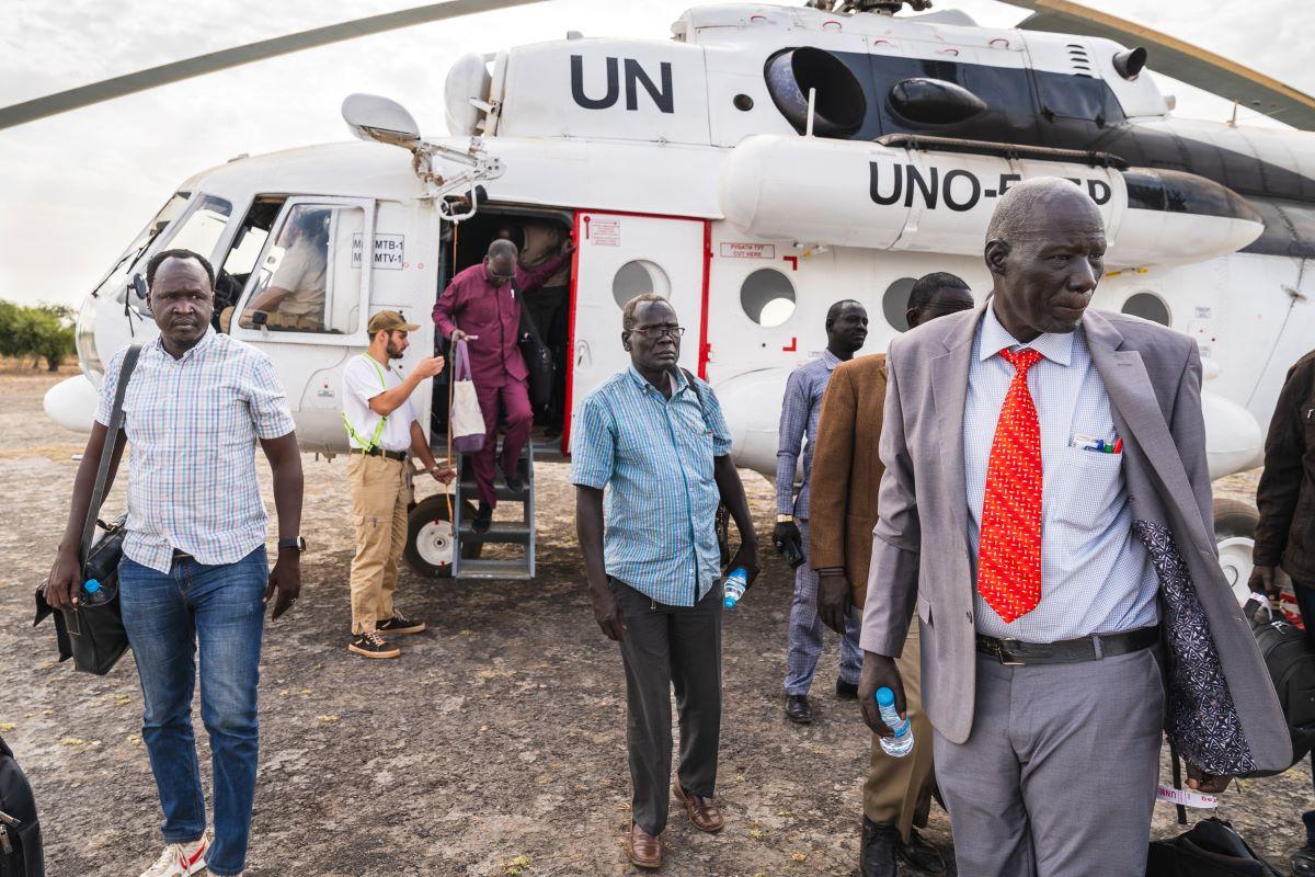 Some helicopters are more important than others, like this one, belonging to UNMISS and delivering justice to Koch. Photo by Peter Bateman/UNMISS. UNITY STATE – The landing of a helicopter at a remote peacekeeping base in…