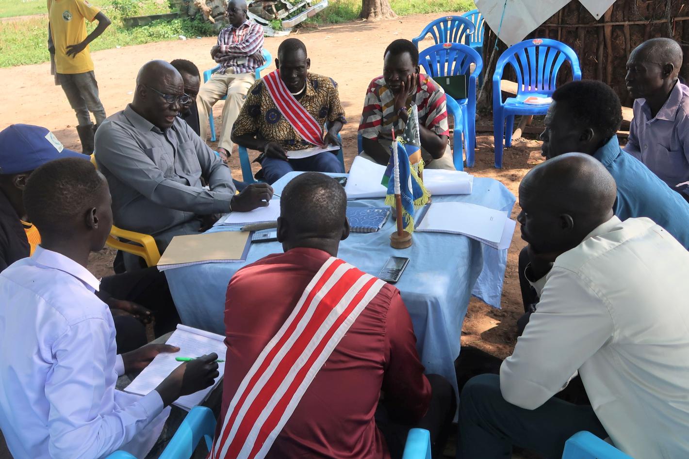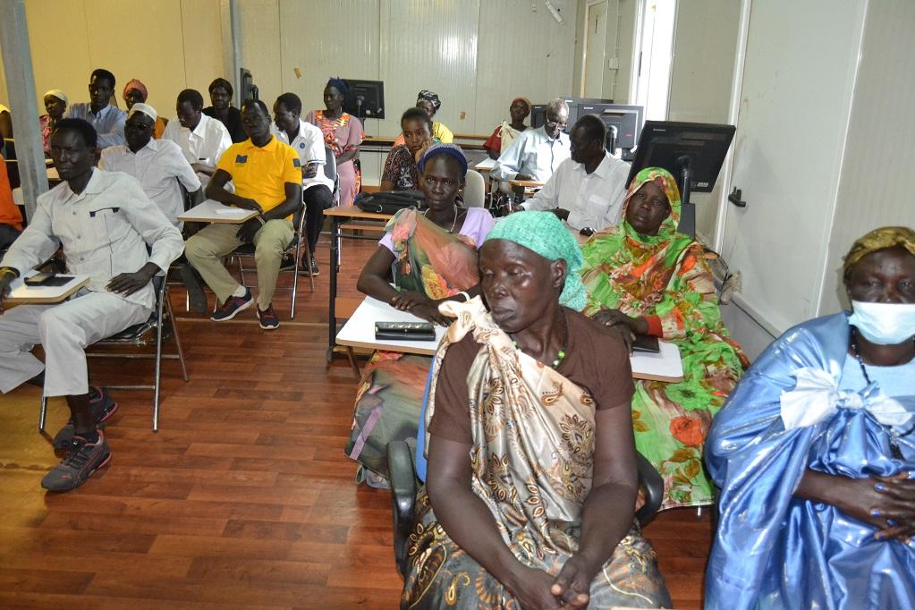 Members of the newly elected Community Coordination Committee within Malakal's protection site for internally displaced persons learning what they need to know about their responsibilities. Photo: Samuel Adwok/UNMISS UPPER…