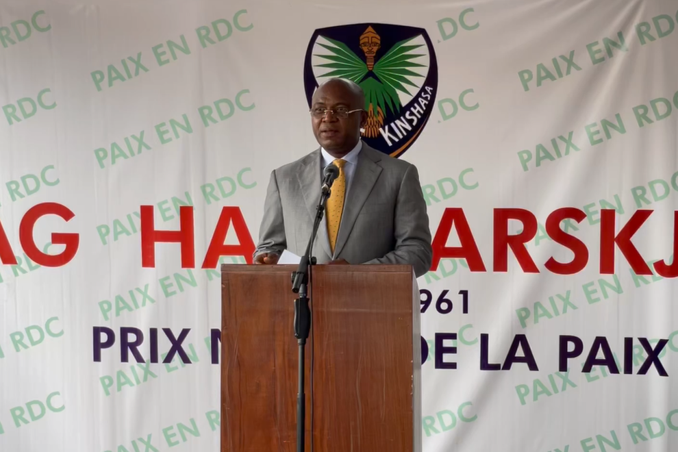 the Governor of the city of Kinshasa, Gentiny Ngobila, paying tribute to late former UN Secretary-General, Swede Dag Hammarskjöld, on the 60th anniversary of his death on 17 september 2021 in Kinshasa. Photo MONUSCO/Lydie…