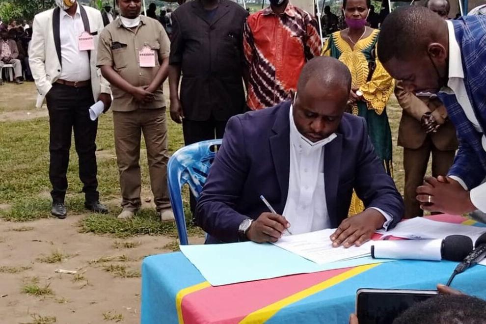 This act of commitment was enthusiastically welcomed by the youth structures of the localities concerned. Photo MONUSCO/Sado Bahemuka MONUSCO has facilitated reconciliation between two communities in Irumu territory in Ituri…