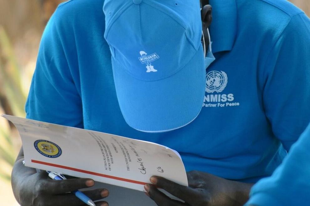 A participant in an UNMISS training studying the action plan to put an end to violations of children's rights, like the recruitment of children by armed forces. Senior officials of the Sudan People’s Liberation Army in…