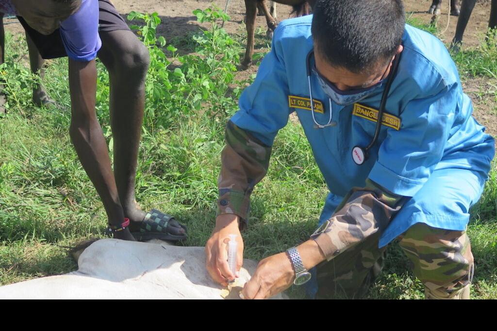 A Bangladeshi vet, serving with UNMISS, in action in Wau. Bangladeshi peacekeepers serving with the United Nations Mission in South Sudan have brought joy to cattle keepers in Wau by offering much-needed free veterinary…