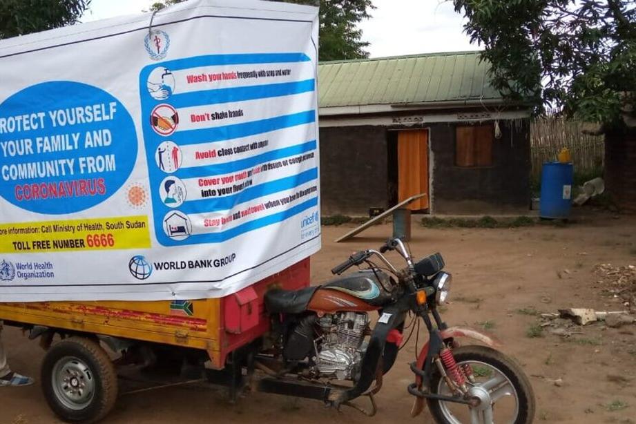 The UNMISS COVID-19 communications toolbox is huge. In fact, even a tricycle fits, like here, in rural Western Equatoria. By foot, by car, and now by tricycle. Whatever it takes to get the message out about how to prevent…