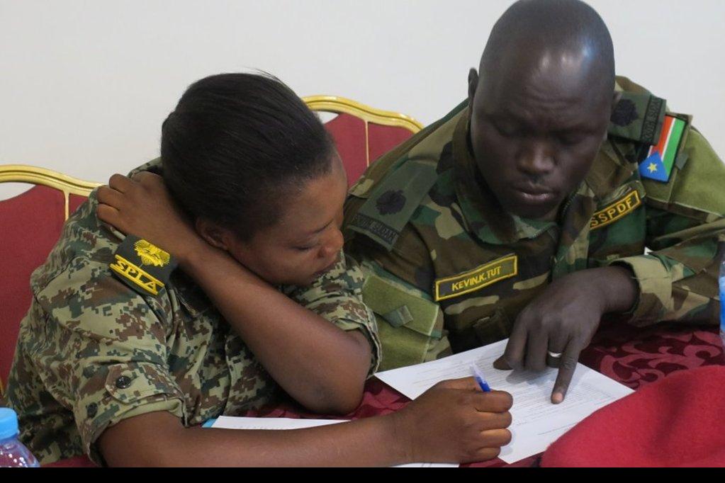 Government and opposition military side by side at an UNMISS-led training on child protection. “It is true that a child is an immature human being with full rights. We would not be what we are today if our rights are violated…