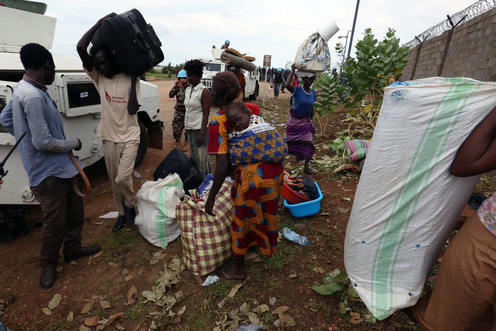Biel Chuol in an ecstatic embrace with his father at the Akobo airstrip. Biel was one of the final 27 displaced persons who returned voluntarily to Akobo from the UN protection site in Bor on Thursday, 8 November 2018 For the…