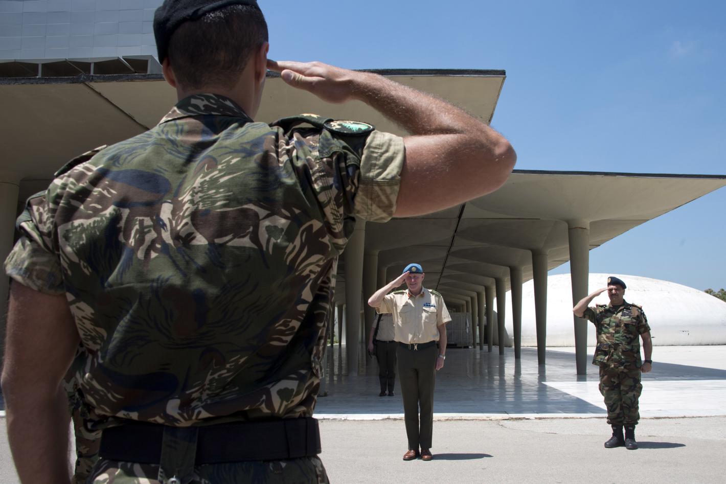 UNIFIL Head of Mission and Force Commander, Major General Michael Beary, salutes the Lebanese Armed Forces guard of honour in Yarze, Beirut. As the UNIFIL Head of Mission and Force Commander, Major General Michael Beary, is…