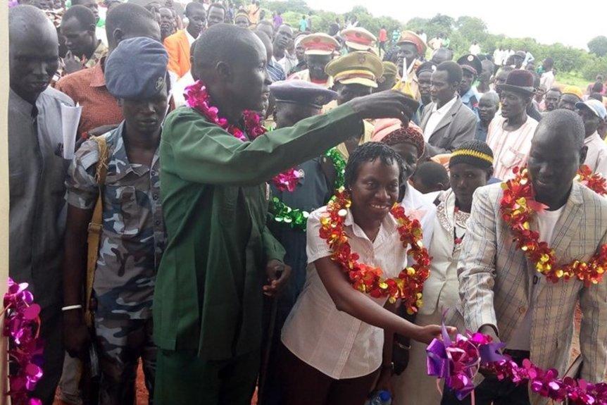 Officer-in-Charge, UNMISS Kuajok Field Office, Abimbola Aina cuts inaugural ribbon with Riang-Alek Police Inspector, Simon Kuot and Bouyar Commissioner James Athian Agok.(Photo: Manyang Mayom/UNMISS) Manyang Mayom The…