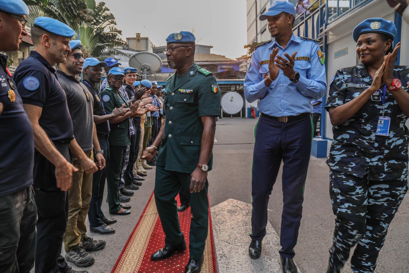 Le commandant de police Mody Berethe saluant quelques officers de la Police de la MONUSCO (UNPOL) à Kinshasa. / Photos MONUSCO Today in Inspiring Action, Annie Kashamura Zawadi, Gender Parity and Coordination Officer, talks…