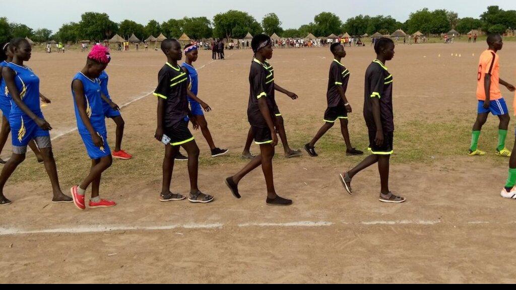 And the girls are marching in, to a sports for peace tournament in Warrap State. Photos: Manyang Mayom/UNMISS Sports unite, they say. Football, the beautiful game and undisputed king as the most popular sport in the world…