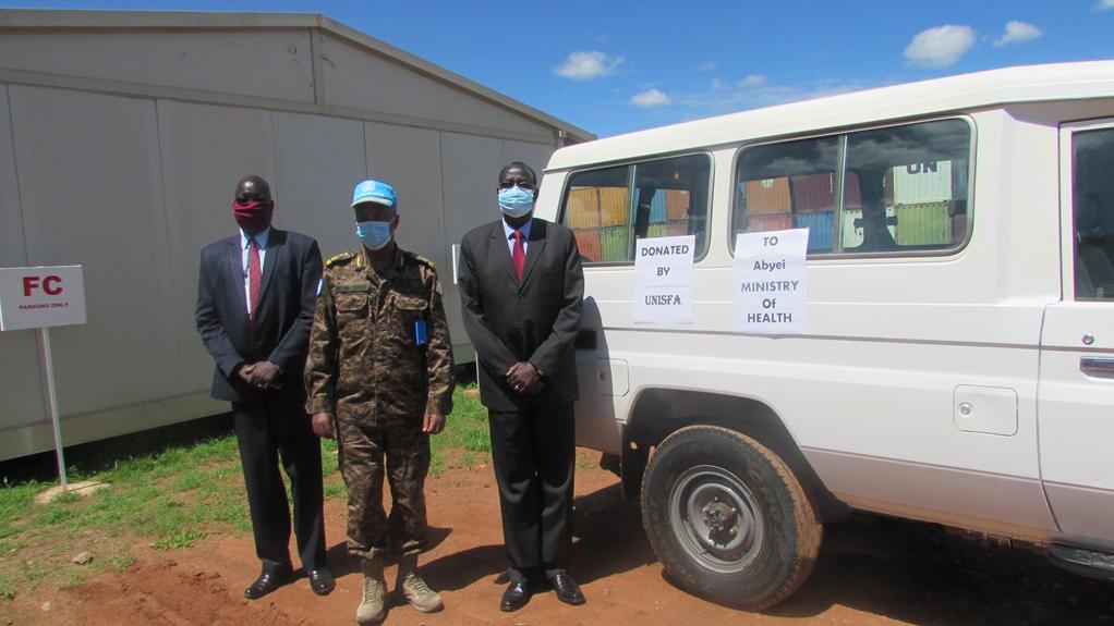 UNISFA’s presents the key of a Toyota Landcruiser to Abyei Ministry of Health