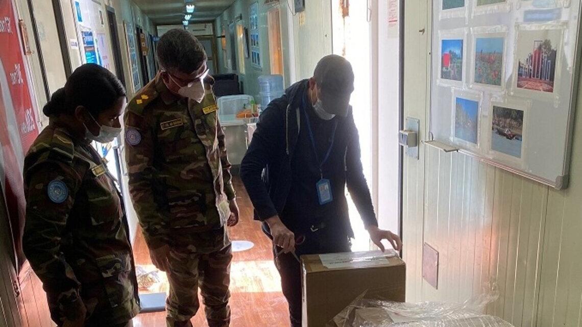 “The fight against Covid: MINURSO’s Bangladeshi Military Unit receives new medical equipment in Laayoune including high flow disposable respiratory masks and rapid covid test kits for distribution to the Mission’s Team Sites…