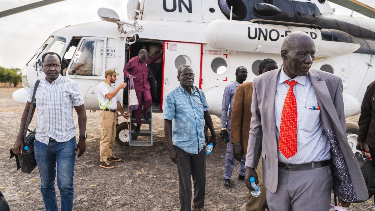 Some helicopters are more important than others, like this one, belonging to UNMISS and delivering justice to Koch. Photo by Peter Bateman/UNMISS. UNITY STATE – The landing of a helicopter at a remote peacekeeping base in…