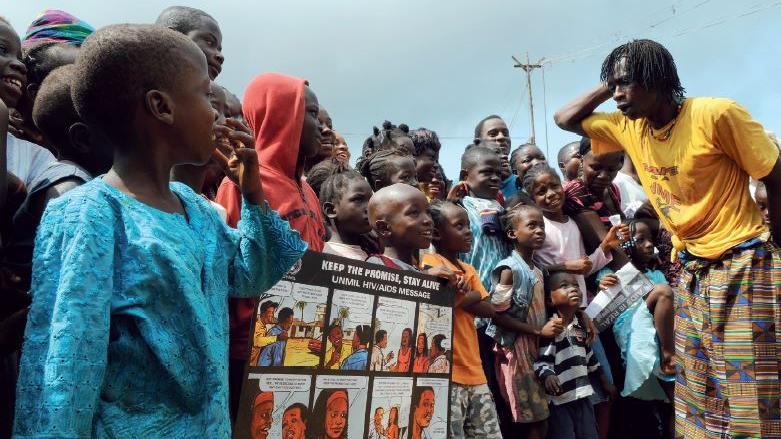 Comedian and UNMIL Peace Messenger, George Tamba (right), celebrated throughout Liberia as Boutini, performs in an AIDS awareness campaign. Photo: UNMIL | 22 Jun 11 Just after the Security Council passed resolution 1509 to…