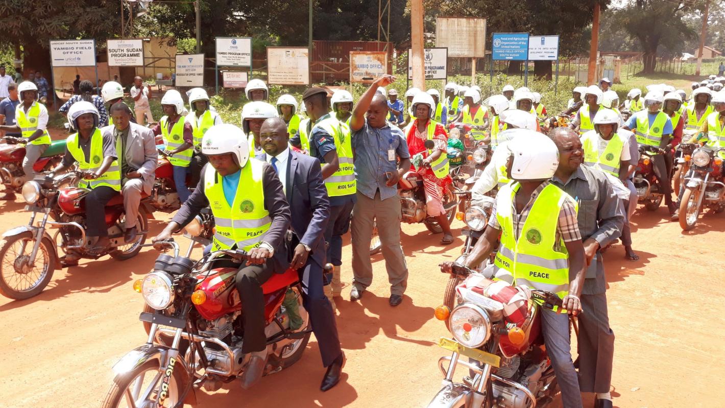 UNMISS in Yambio promotes road safety by asking boda boda drivers to ride for peace