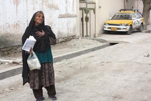 JALALABAD - Baswra squats on a dirty street corner in the eastern Afghan city of Jalalabad, watching fellow Afghans walk by with packages of assistance from aid agencies. When the door to the distribution site opens, she…
