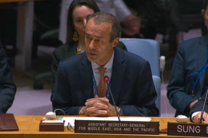Remarks by Mr. Khaled Khiari, Assistant Secretary-General, Departments of Political and Peacebuilding Affairs and Peace Operations REMARKS TO THE SECURITY COUNCIL ON THE IMPLEMENTATION OF THE UN SECURITY COUNCIL RESOLUTION…