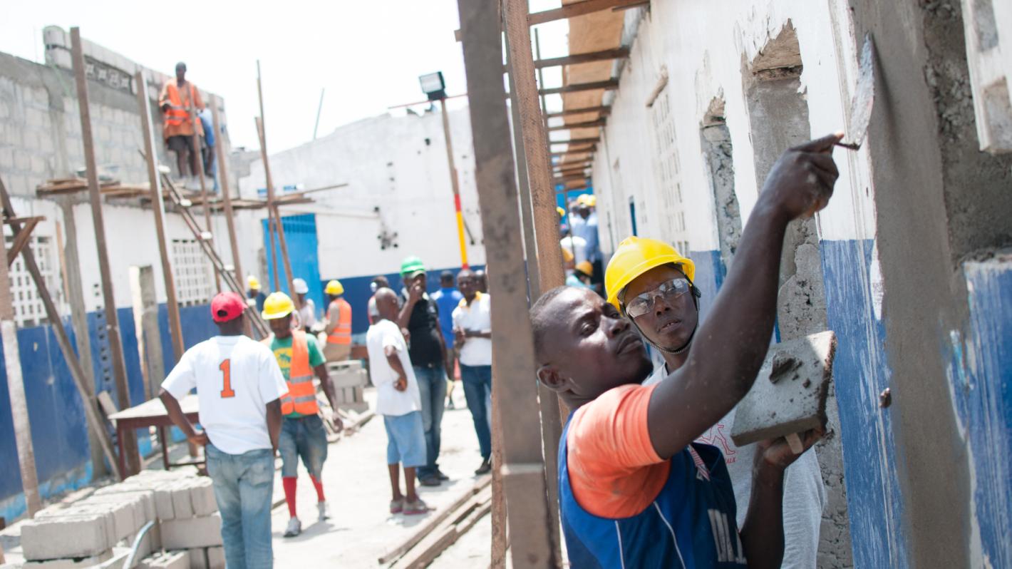 Safety is guaranteed for Philip Jah’s children. Mr. Jah is a mason at the school with children enrolled in the 6th and 7th grades. “I am doing this work because I want my children to come back to school since right now they are sitting home,” he said.