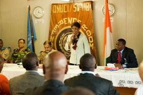24 July 2013ONUCISpecial Representative Aïchatou Mindaoudou meets Director of National Authority for Disarmament, Demobilisation and Reintegration (ADDR), Fidèle Sarassoro