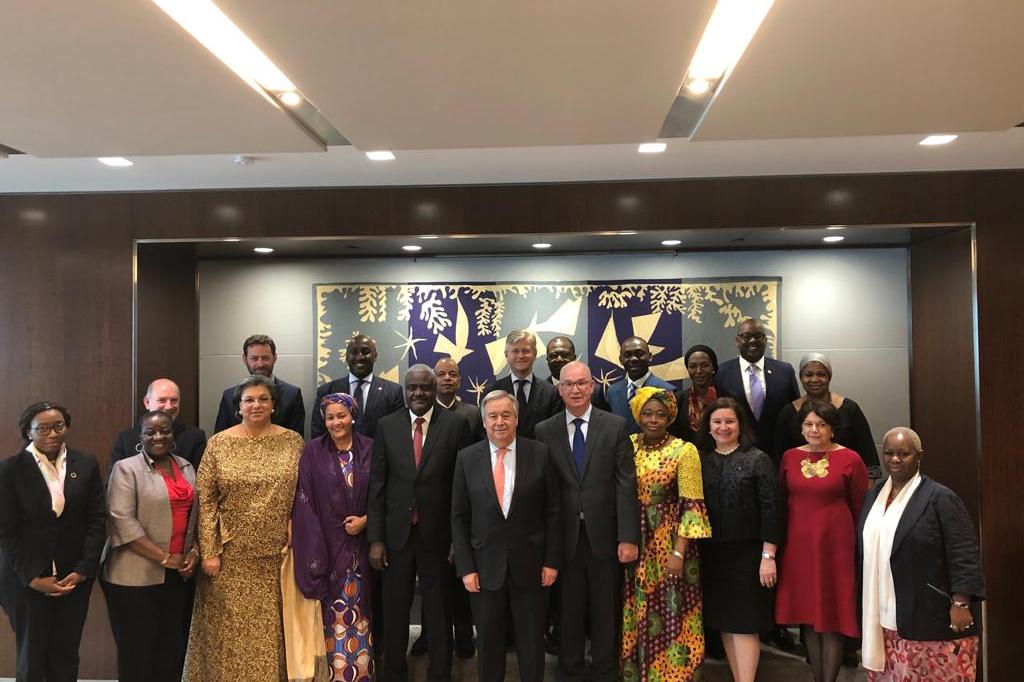 SG Guterres and Chairperson Moussa Faki with UN and AU leadership at the third annual conference