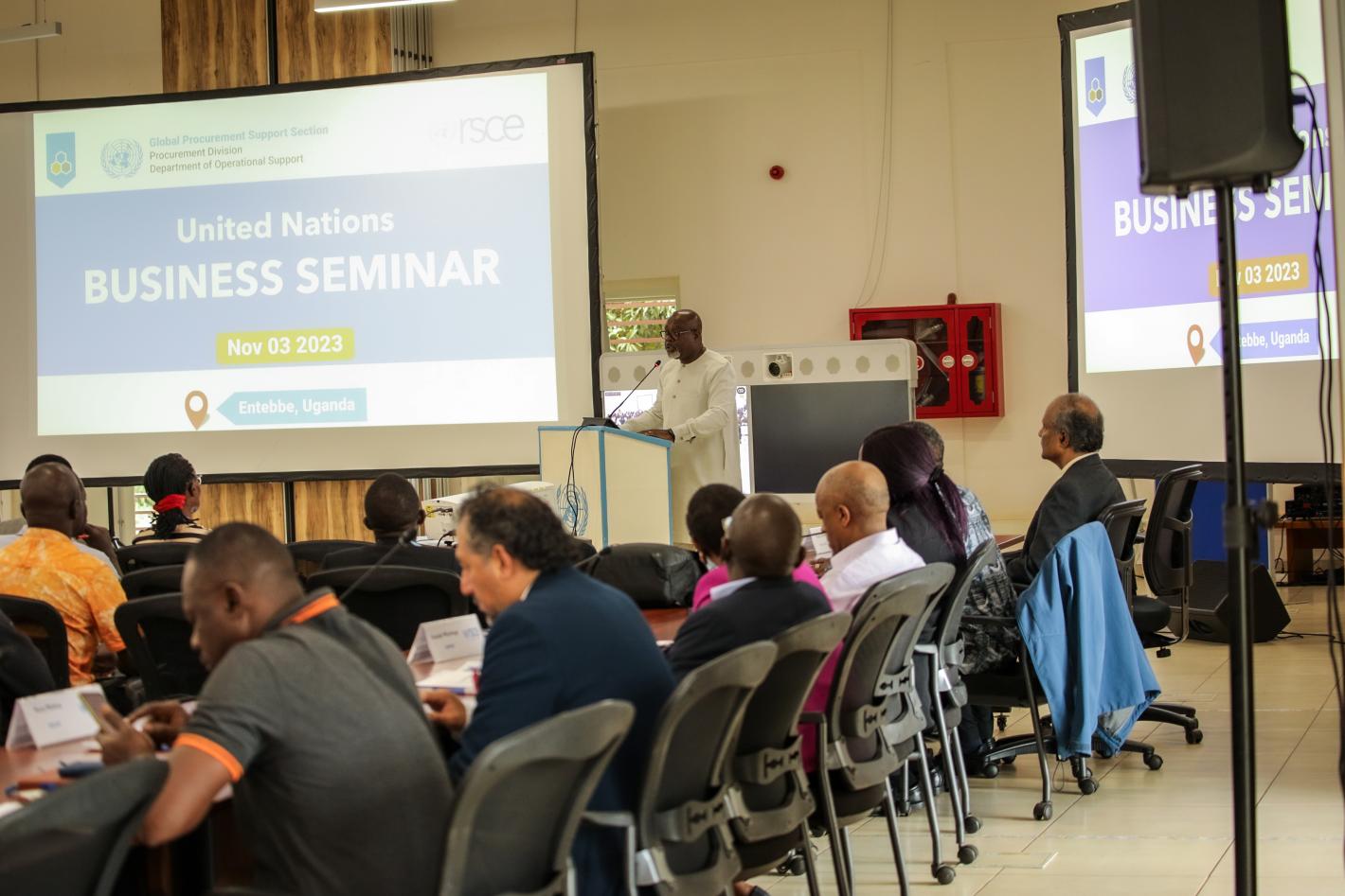 Paulin Djomo, Director RSCE addresses the participants during the UN Business Seminar