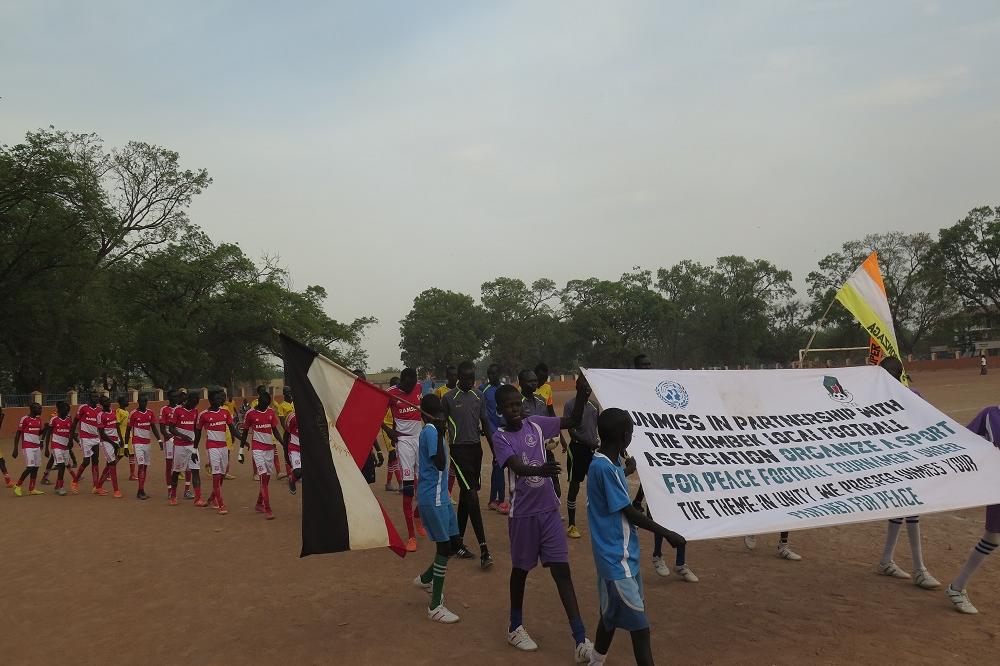 The Gonzaga Football Club on Sunday, 19 March, won the Sport for Peace football tournament in front of over 5,000 spectators at Rumbek Freedom Square. Speaking after the game, UNMISS Political Affairs Officer, Mr. Athiaan…
