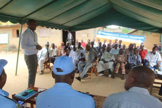 A delegation of the United Nations Operation in Côte d'Ivoire (UNOCI), on Tuesday, 17 November 2015, discussed strengthening social cohesion in order to protect children with people in Kpably, a village in Toulepleu sous…