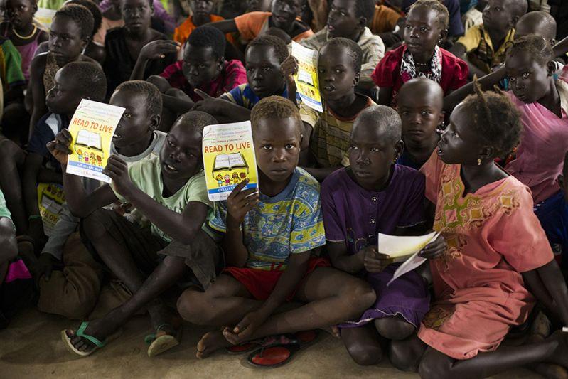 Children attending International Literacy Day festivities at displaced persons site in Juba on 8 September. Photo: UNMISS/JC Mclwaine
