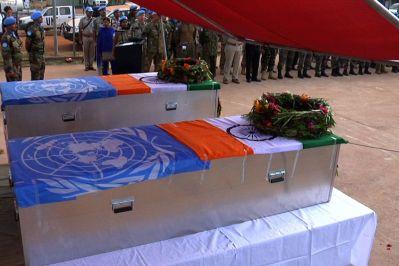 Memorial service in Juba on 21 December for two Indian soldiers killed in an attack on the UNMISS base in Akobo, Jonglei State, on 19 December. Photo: UNMISS/Julio R. Brathwaite