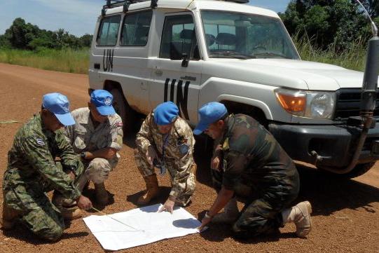 Peacekeepers from Egypt, El Salvador, Canada and Romania on patrol between Raja and Wau, Western Bahr el-Ghazal State. The military component of UNMISS currently comprises 6,806 troops and 142 Military Liaison Officers (MLOs)…