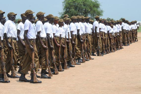 First class of civilian prison cadets during orientation at Prison Training Academy in Lologo, Juba. Aiming to professionalize the National Prisons Service of South Sudan, 100 university graduates were recruited from all 10…