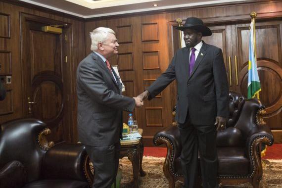 South Sudanese President Salva Kiir meeting in Juba with UN Under-Secretary-General for Peacekeeping Operations Herve Ladsous at the beginning of his three-day visit to the country on 5 July. Photo: UNMISS/Martine Perret…