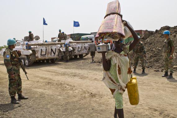 Tanzanian peacekeepers buying handicrafts from the local Southern cooperatives at the International Women’s Day celebration held at Tyr’s Cultural centre