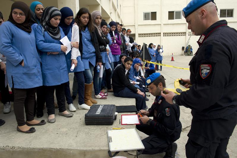 UNIFIL Investigation Officers simulating an accident scene at Tyre’s Secondary School
