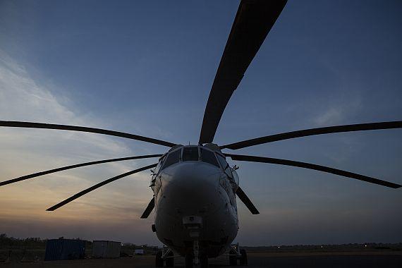 With an unprecedented lifting capacity of more than 12 tons, the UNMISS Mi-26 helicopter is the backbone of mission support. Photo: UNMISS/Martine Perret. Click for larger photo.