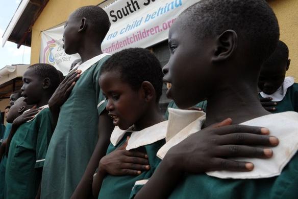 11 October 2012 - Children singing South Sudanese national anthem today at Confident Children out of Conflict Orphanage on International Day of the Girl Child in Juba.