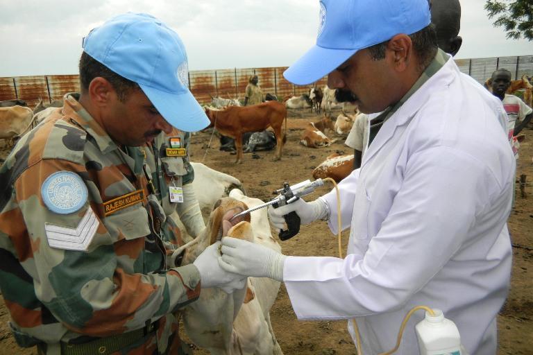 14 July 2012 - UNMISS Indian veterinary hospital carried out a one-day deworming campaign for 200 animals from the University of Upper Nile animal production farm in Malakal on 14 July. University students and Ministry of…