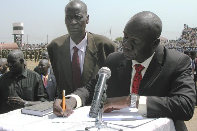 14 March 2012 – Furthering rule of law and a decentralized system of government, citizens of Western Bahr El-Ghazal State witnessed the signing of the State Transitional Constitution and swearing-in of their governor today in…