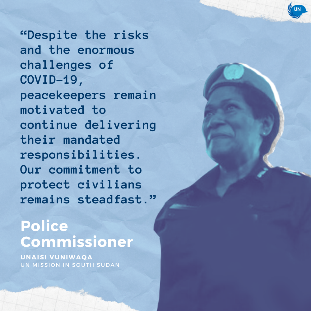 Unaisi Vuniwaqa: When I first joined UNMISS, there were no female officers in its leadership cadre. I was appointed as Deputy Police Commissioner and later as Police Commissioner. As of now, we have women leaders in professional positions and Individual Police Officers in leadership positions. This has contributed immensely to both operational effectiveness and coordination and the overall morale of the police component. During the re-designation of three Protection of Civilians sites to conventional internally displaced person camps in UNMISS, all the UN Police officers in these Field Offices were headed by women. If given the right support and mentoring, women can perform as well as their men counterparts, or even better.