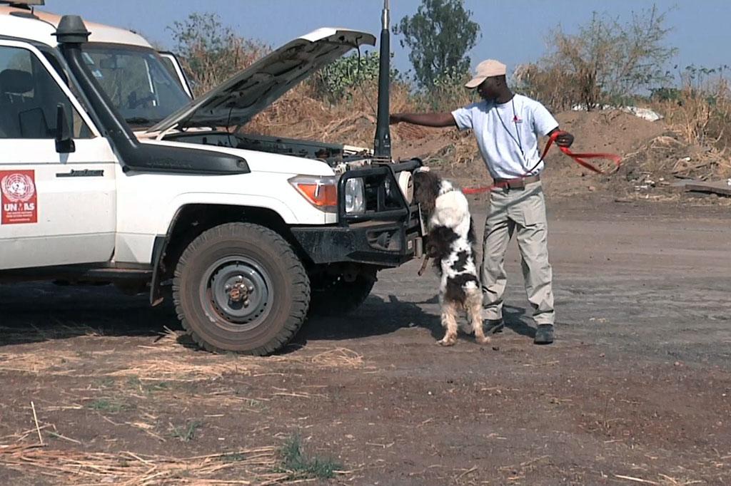 Standing on his hind legs to peer at a United Nations vehicle in South Sudan, he poked his head under the hood and sniffed, brown curls shaking around as he searched for explosives. This water cocker spaniel is one of eight…