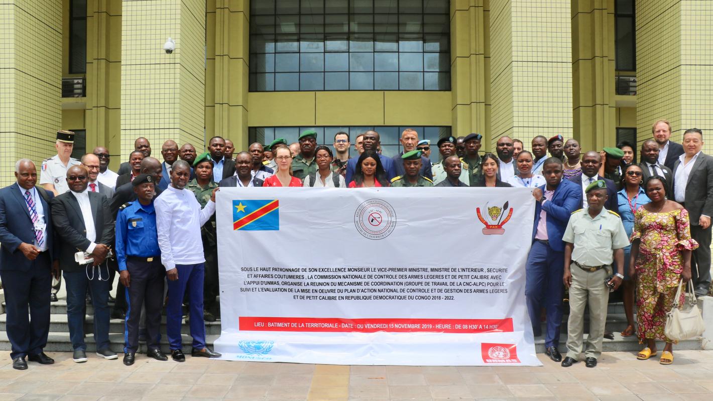 Kinshasa, November 18, 2019: MONUSCO Mine Action Service supported the National Commission for the Control of Small Arms and Light Weapons and the reduction of armed violence (CNC-ALPC), in the organization of a workshop for the monitoring and evaluation of the implementation of the 2018-2022National Action Plan for the Control of Small Arms and Light Weapons in the DRC (NAP).The workshop was held on Friday 15 November 2019 in Kinshasa and brought together experts in the field of weapons management, representatives of different diplomatic corps, United Nations representatives, national and international NGOs, and various organs of the DR Congolese Presidency, Government and Parliament.
