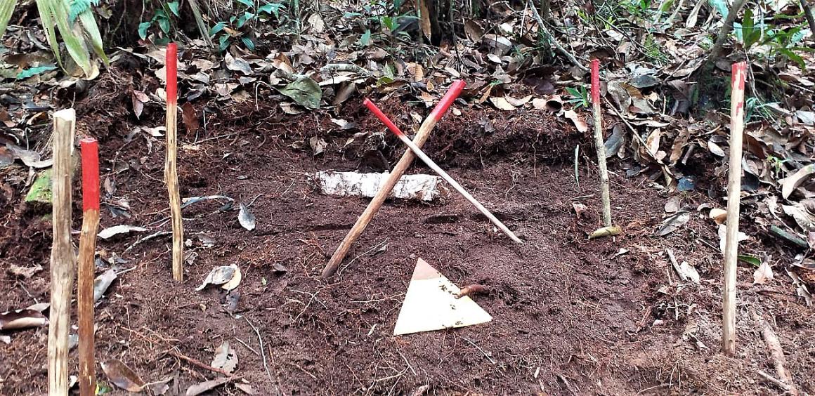 The clearing of hazardous areas aims to identify and later eliminate explosive ordnance that pose a risk to people's lives. “As reintegrated persons, we are happy to start contributing with our work to the process of reconciliation with the communities, which as a result will soon be able to move freely through their territories,” says Elver Monroy, HUMANICEMOS DH deminer who detected this first explosive ordnance. The finding is the result of the meticulous work carried out since last October by the Non-Technical Survey (NTS) teams, which aimed to identify areas with possible contamination.
