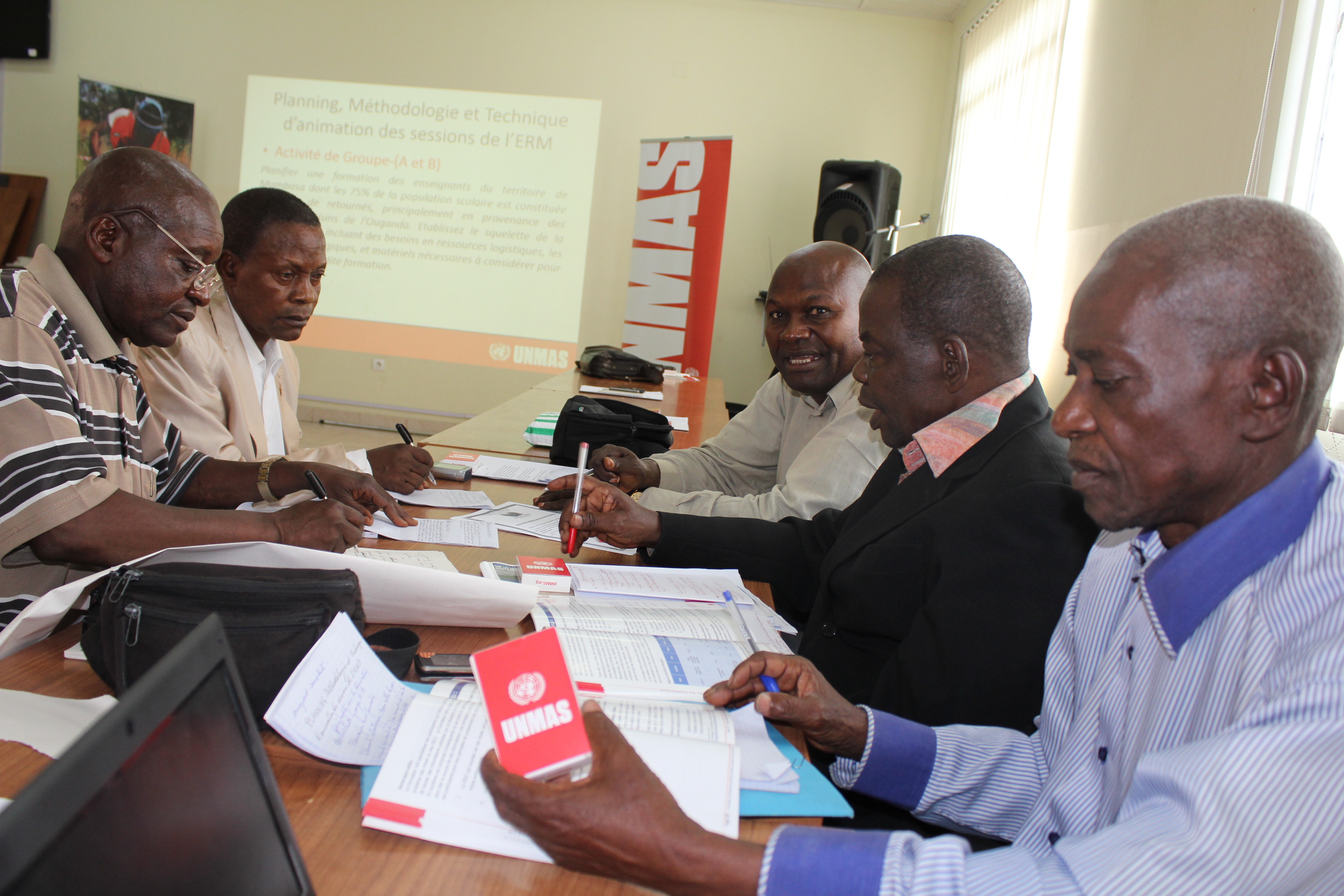 Due to the size of the country and number of schools, the UNMAS-DRC programme is building a pool of national experts who can train teachers around the country. An important group of trainers, National Education Inspectors, participated in a three-day Training of Trainers on Risk Education session recently in Kinshasa.