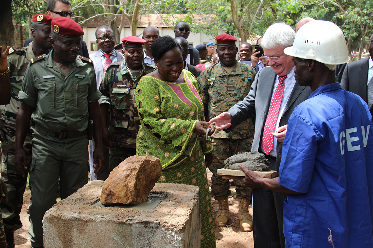 USG for Peacekeeping Operations, Hervé Ladsous & CAR Minister of Defense, Marie-Noelle Koara, inaugurating the start of construction of the Camp Kassai central armoury in Bangui. UN Photo /Dany Balepe