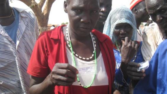 "I have my card with me and I want to vote because it is my right," said Ms. Akuei. "I will wait until the end."