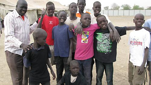 One of the T-shirt recipients was Jedo Abdalla Bashir, who moved into the camp within weeks of its opening. "I came by boat from Juba with the intention to go to Khartoum to stay with my uncle because my father died," said the 12-year-old boy, who lost sight of his mother at a bus stop in Malakal. "I cannot communicate with her because I do not have her telephone number, and she does not know where I am."