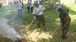 Some 75 peacekeepers from the Kenyan army contingent collected a large amount of garbage at the hospital site and incinerated the rubbish to improve the facility's hygiene.