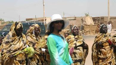 Khartoum, 1 April 2010 – Well-known BBC presenter of Sudanese origin, Ms. Zeinab Badawi, spent time with the Hakama women singing group and watched them perform at the Tayeba displaced persons camp in Khartoum North. The Hakamas had traveled from Southern Kordofan State to perform for Ms. Badawi, who is in the country to learn about the role of cultural symbols and the folk and traditional forms of communication in peace-building.