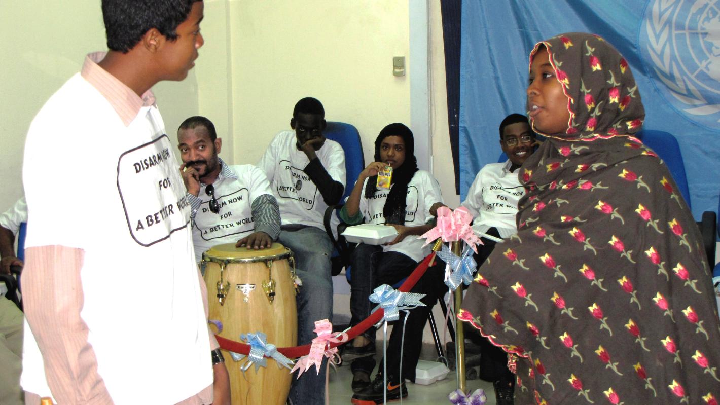 The theme of this year's event, 'Disarm Now for a Better World', resonated in songs and drama presented by students from Khartoum International Preparatory School, Comboni College and the Ahfad University for Women.