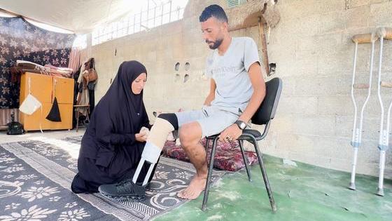 El pasado mes de mayo, el palestino Ibrahim Abdel Nabi iba camino de llevar ayuda a su familia cuando fue alcanzado por una bala explosiva israelí. Perdió una de sus piernas y la capacidad de velar por su familia, por lo que decidió hacerse una prótesis con los materiales disponibles.