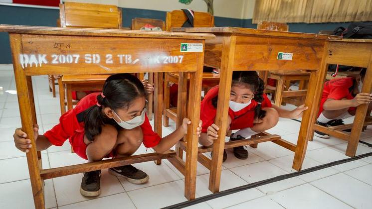 La número dos de la ONU asiste a un simulacro de evacuación por un desastre y observa la atención que los estudiantes y toda Indonesia dedican a hacer frente a las posibles catástrofes.